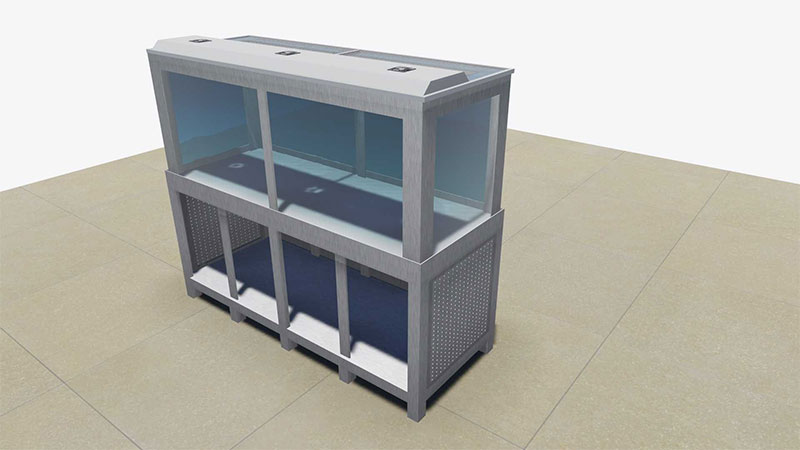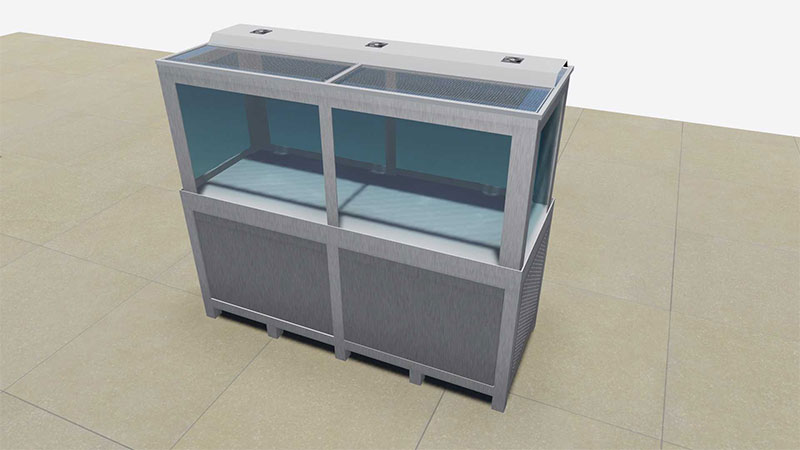 Standurile suport pentru acvariile comerciale sunt proiectate sa reziste greutatii fiecarui acvariu in parte si nu fac rabat de la acelasi standard de calitate pe care ni l-am impus. Sunt realizate exclusiv din aluminiu si/su inox pentru a respecta reglementarile legale in domeniu alimentar.