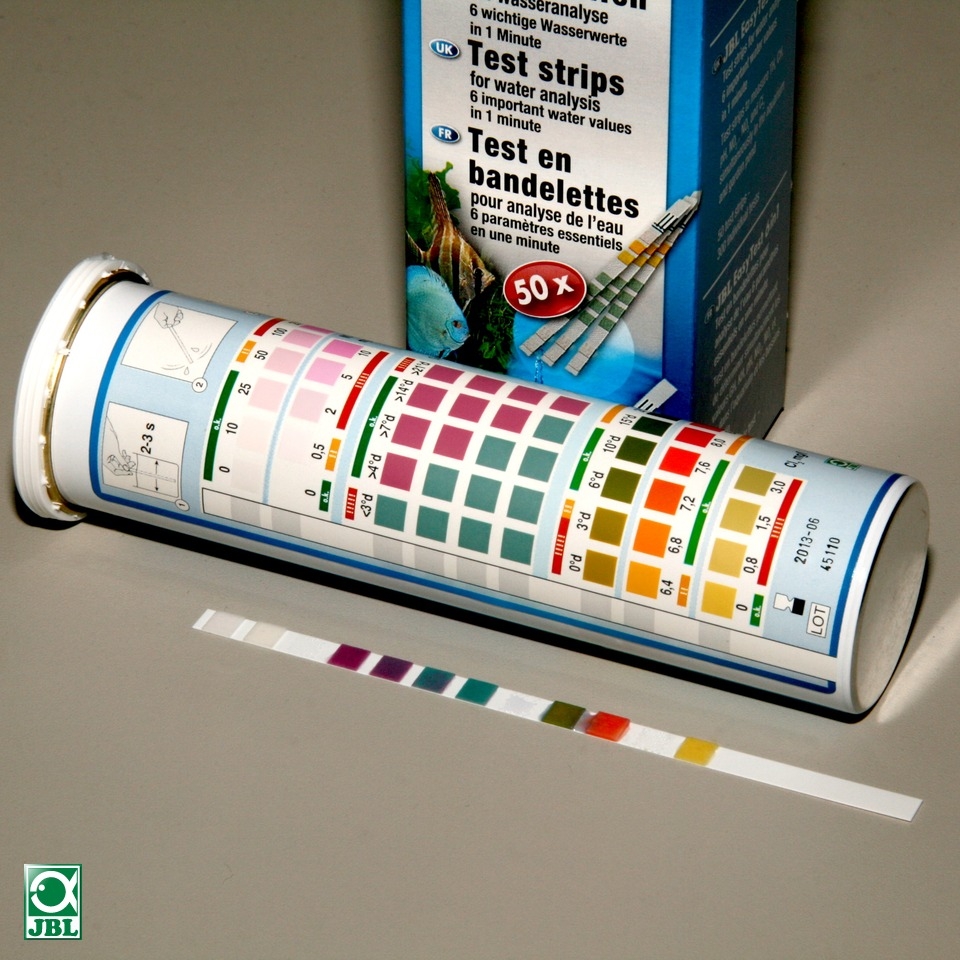 JBL EasyTest 6 in 1 Un avantaj suplimentar al testului JBL EasyTest 6 in 1 este ca valorile pot fi citite imediat. Scala de culoare arata clar valorile ideale, pe cele care pot fi imbunatatie, sau pe cele inacceptabile. Contine 50 de benzi pentru test - pH intre 6.4 si 9.0 - Duritate carbonica KH intre 0 si 20° dKH - Duritate totala GH intre 1 si 21° dGH - Nitriti (NO2) intre 0 si 10 mg/l - Nitrati (NO3) intre 0 si 25 mg/l - Test de clor |