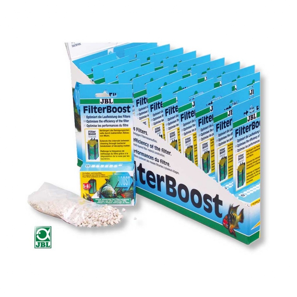 JBL FilterBoost sunt bacterii speciale de cultura pentru o descompunere eficienta a materiei organice din filtru. Previne imbacsirea prematura a filtrului cu mazga si depuneri organice, prelungind durata de viata a acestuia. Bacteriile pentru inlaturarea poluantilor din acvariul dvs, sunt mai eficienti si actioneaza pe o perioada mai lunga de timp folosind JBL FilterBoost. JBL FilterBoost este sub forma de granulele minerale, pur si simplu asezati-l in 2-3 straturi de material filtrant. Continut: 25ml de JBL FilterBoost prelungeste intervalele de curatare a filtrelor cu pana la 6l.
