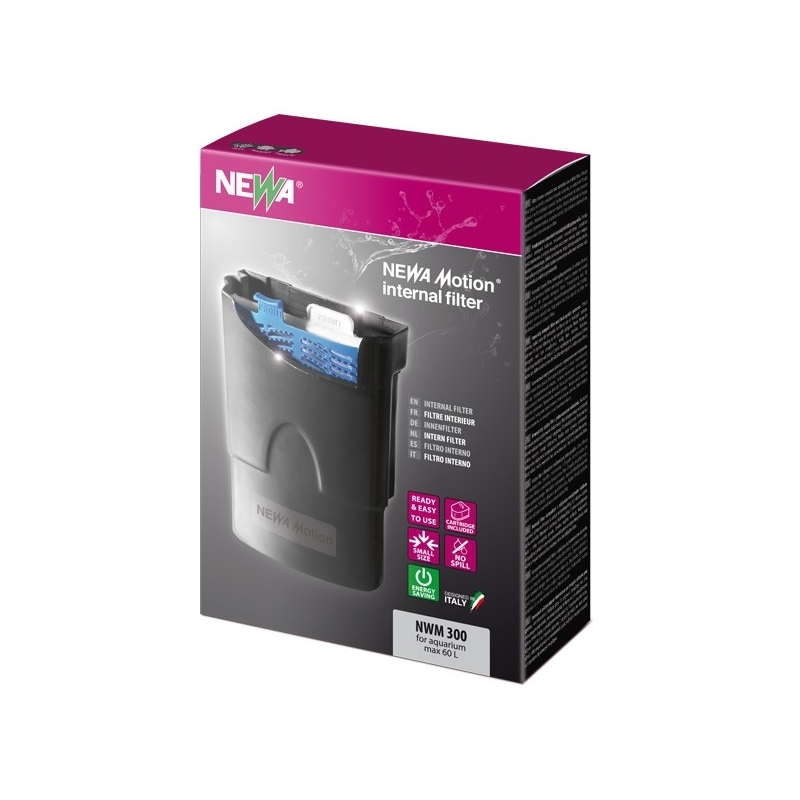 Newa Motion este un filtru intern compact cu cartuÈ™e filtrante de unică folosință. Eficient datorită filtrului mecanic încorporat în pompă, a cartuÈ™ului de filtru chimic prevăzut cu fulgi de carbon de mare absorbanÅ£ie È™i a filtrului biologic conceput pentru a oferi o suprafață mare È™i oxigenare optimă pentru bacterii nitrificatoare. Pompa de miÈ™care perfect încorporată în carcasa filtrului È™i detaÈ™abilă de ea pentru o intretinere usoara, garantează debitul de apă constant cu un consum minim de energie. Este extrem de compact si poate fi amplasat cu uÅŸurinţă în acvariu. Două ventuze puternice È™i un cârlig special asigura flexibilitate maximă pentru ancorare. Proiectat pentru a fi practic, permite întreÈ›inere uÈ™oară È™i rapidă. Fiecare filtru poate fi uÈ™or înlocuit fără a-Å£i uda mâinile È™i fără a opri acÈ›iunea de filtrare. NEWA MOTION: 1. CartuÈ™ de filtru chimic cu fulgi de carbon cu înaltă absorbÅ£ie; 2. CartuÈ™ de filtru biologic cu o suprafață mare È™i oxigenare maximă, proiectat pentru a găzdui cea mai mare concentraÈ›ie de bacterii; 3. Compact, compartimentare economică a filtrului; 4. Girlă circulară a pre-filtru mecanic asamblată în camera rotorului; 5. Pompă de înaltă performanță cu un consum redus, uÈ™or detaÈ™abilă de filtru; 6. Conducte cablu incorporate; 7. Două ventuze oferă flexibilitate maximă pentru ancorarea la acvariu.